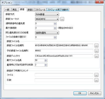 繰り返し録音など予約のカスタマイズ設定も可能毎週欠かさず聴きたい番組は「スケジュールの追加」プルダウンメニューから「曜日予約」で繰り返しの録音の予約を設定できます。さらに、同時に放送される2番組を録音する事が可能なのも利点として挙げられます。加えて、番組表を表示させ、気になる内容の番組を見つけたらダブルクリックするだけ、とシンプルな操作で録音予約を設定する事が可能です。TV録画感覚で予約ができる反面、番組表では2-3日先の放送予定までしか表示されない局が多いので直近の番組にのみ有効な方法だと言えます。録音したファイルはRadikaで再生できない録音したラジオ番組はRadika初期設定時にユーザーが指定するフォルダー内にAAC、MP3、FLV、M4A形式で保存されます。録音したファイルには「ツール」プルダウンメニューから「保存フォルダーを開く」をクリックでアクセス可能。ただし、Radikaからは録音したファイルを再生できないので、iTunes、AIMP、Winampなどの音声プレーヤーソフトを使って再生する必要があります。
